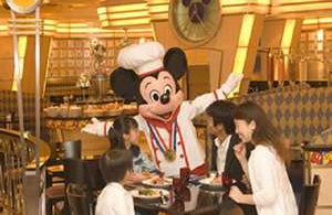 館内のレストランでは、ミッキーがシェフになり、ゲストの皆さんを温かく迎えてくれます。