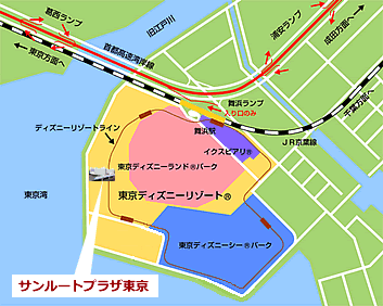 東京駅から、京葉線または武蔵野線にて舞浜駅下車。